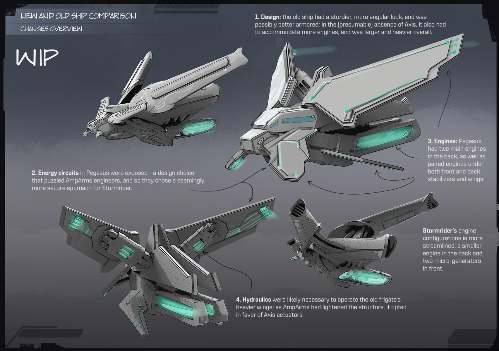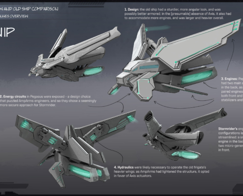 Little is publicly known about Pegasus — mainly the fact that it was probably built near the end of War, as there is evidence in The Library and some entries in “Diaries of Elara” which suggest that. AmpArms based its Stormriders on Pegasus-01, believing to have circumvented most, if not all, limitations of the older designs, but some of the company’s engineers came to think that they simply lacked the understanding to appraise some of the finer qualities of this ancient machine.