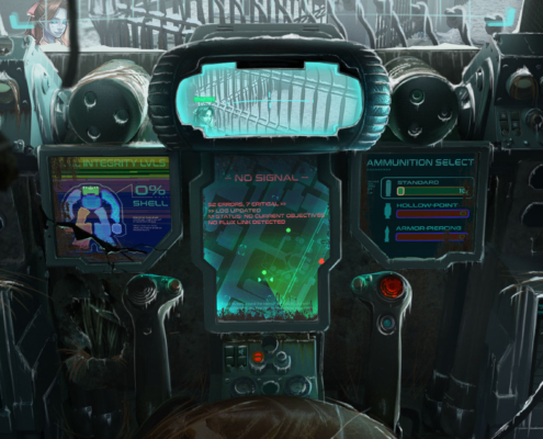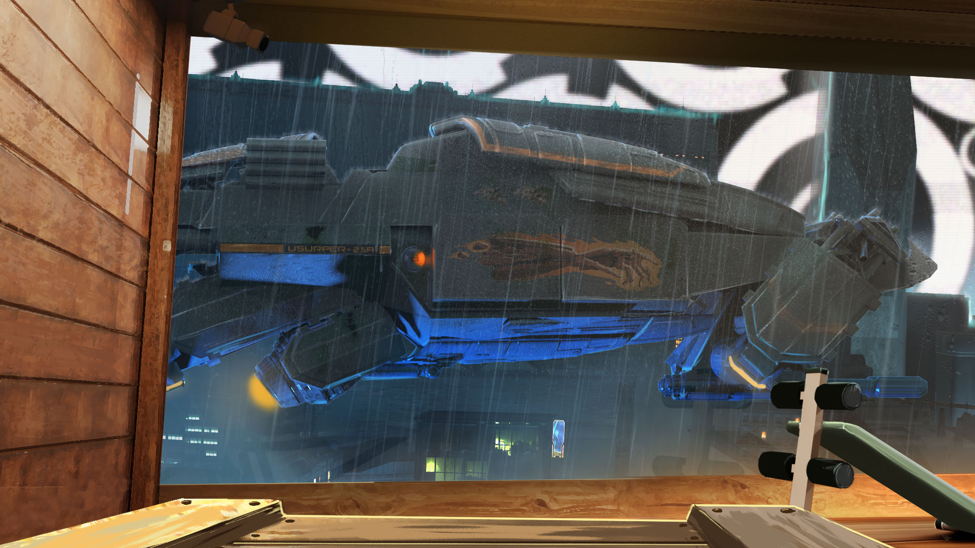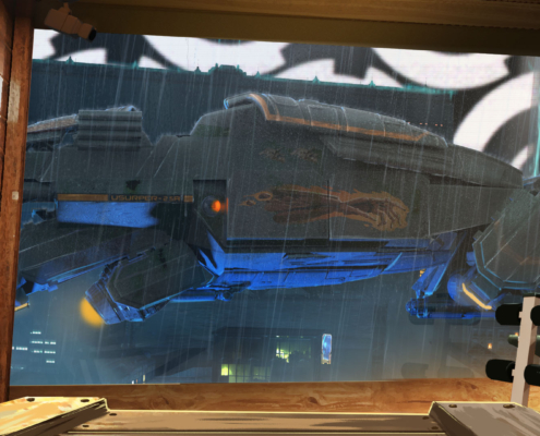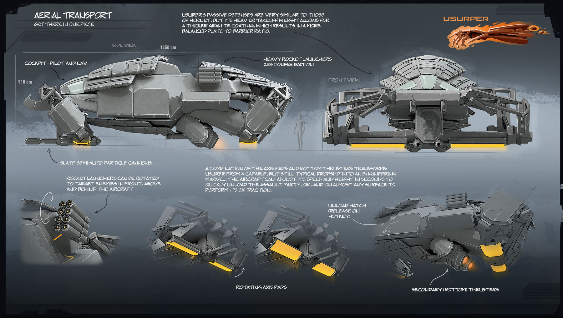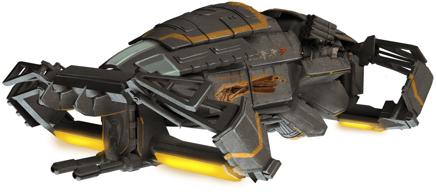 Phoenix primary transport vehicle, Usurper is anything but defenseless or slow. It’s a big machine with complicated handling, and while anyone sufficiently qualified can operate it, only abusers and androids are capable of doing it efficiently. There are stories going around in docks about Usurper pilots making a drop only to see their party wiped out minutes later — and then finishing the job by themselves. Guess who tells those stories.