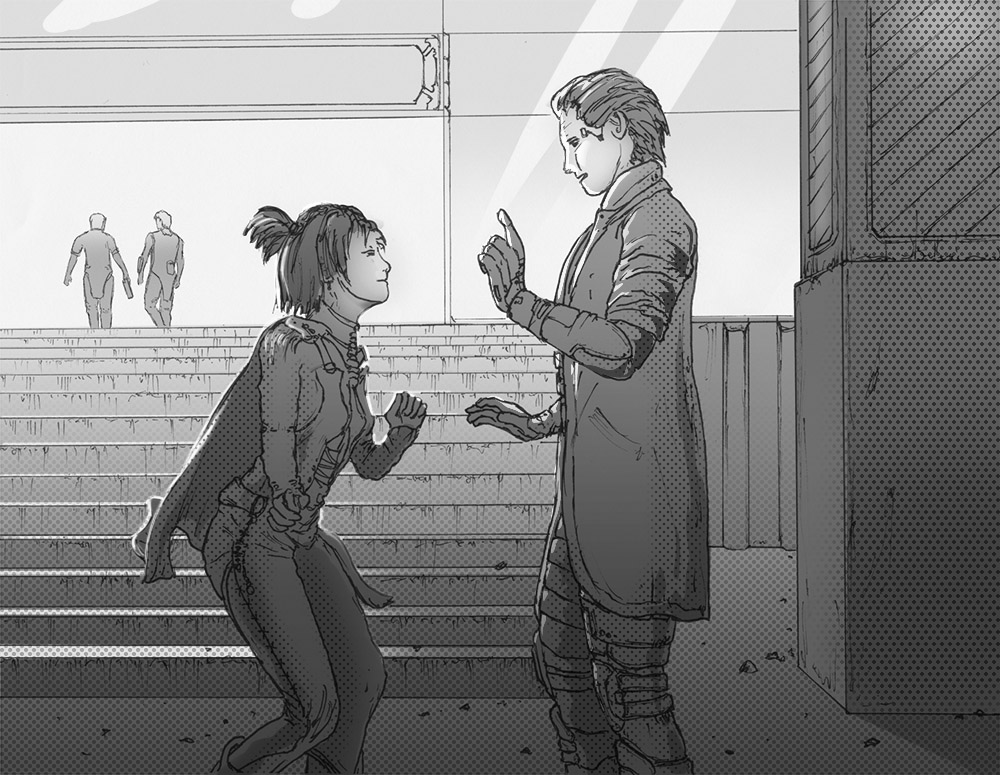“Fast, yeah? That’s my guy! I mean, I tuned him. What, did you think I got a place like that with a generous Aresian pension… or Aria’s allowance?” Germa burst into laughter. “I own a small manufacturing company here: we produce concierges from TFX’s dummies, and I don’t mean to boast, but my boys and girls are in every fifth building of this city.” He winked at Vince. “Including, my friend, a couple of offices of Mirian Ops.”