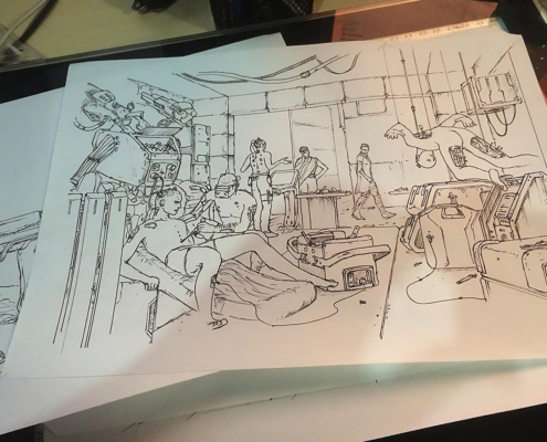 Pyrax hotel was just a bit further into Zone 2 (Vince was hoping for a nicer place; at least his sept ID helped him get through a zone gate without hassle). Another android concierge (could this be one of Germa’s, too?) checked him in, and after having inspected his room, which looked like a large closet with a bed someone put in there by mistake, he headed to the roof. He was going to pick the lock, but the door was open; he went through and looked around. Chairs were standing here and there next to the Talian solar batteries (probably one of the few pieces of technology Mirians didn’t manufacture themselves), and the floor was littered with leftover food, glass bottles and plastic bags, so either the roof was accessible to guests, or whoever run the hotel simply didn’t care.